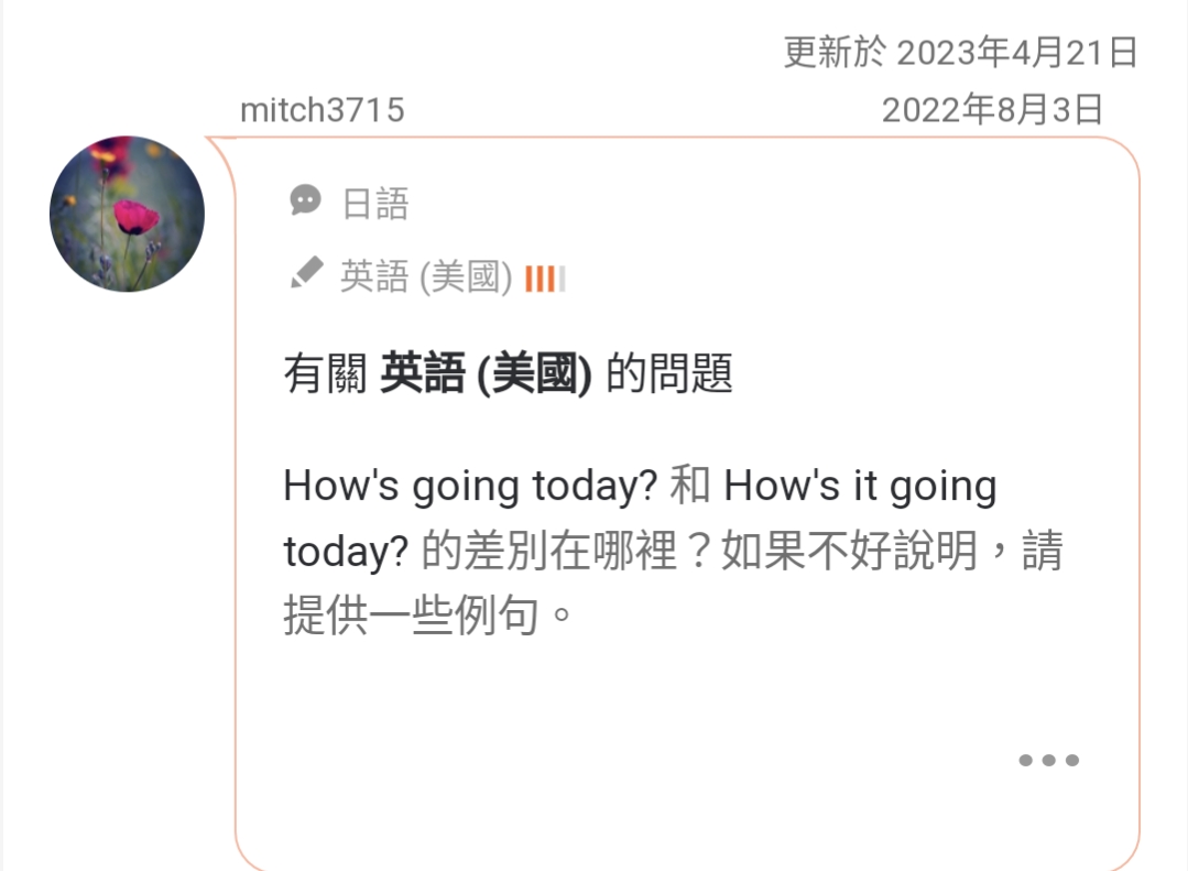 → etiennechiu : 見上圖,老外都說他們不會說How's g 1.200.163.103 07/16 21:00