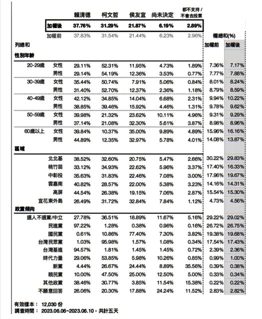 柯文哲在20-29歲的女性狂贏賴清德23%