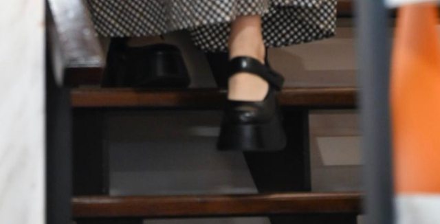 是一雙大頭厚底鞋,腳後跟沒有被包起來