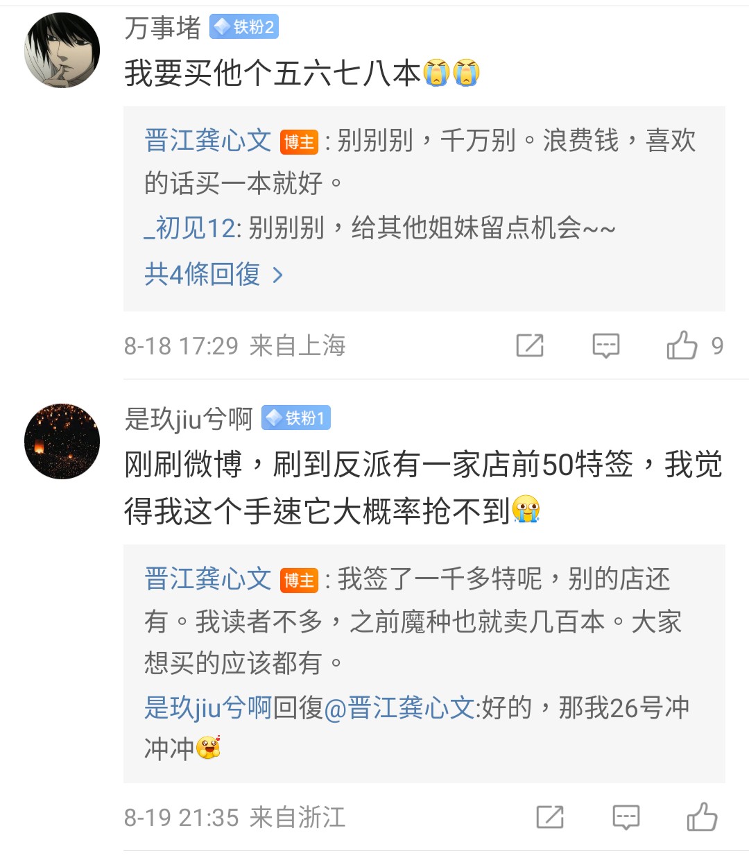 推 athana: 剛看到微博有晉江作者本人照,清一色是女作者 08/08 21:05