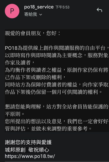 : → neves: 留在po18的文不會出事,但作者自己可能會出事 09/11 21:04