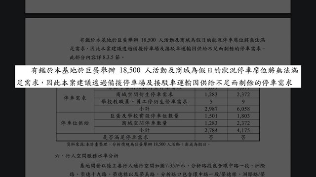那雖然法律規定的停車空間是各3179席與3778席,不過依照推估,假設台中巨蛋舉辦18500