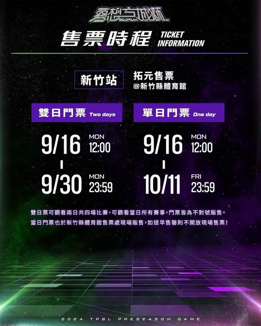 #售票資訊|TPBL #季前熱身賽 《2024夢想方城獅——新竹站》 購票大全