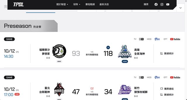 推 dodo212 : TBPL只有五隊會有即時比分謝謝 10/12 18:16