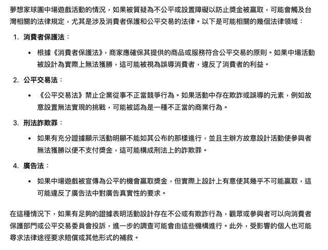 → WenJzz : 其實GPT講的內容錯誤率蠻高的 除非有真的懂法律的 10/20 22:47