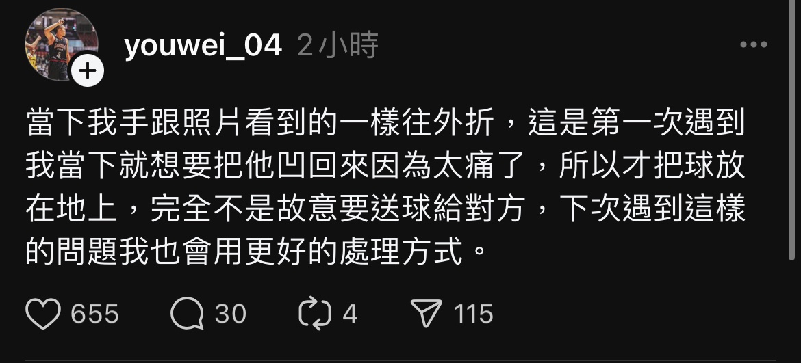 推 VIC0418 : 吳永仁訪問也說應該要抱住或者跟裁判說一下11/02 21:10