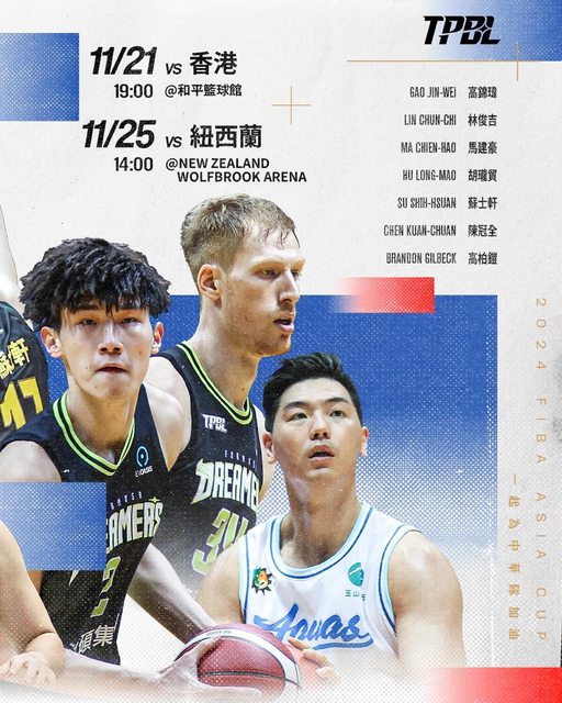 亞洲盃資格賽即將展開,TPBL本次有七名選手入選代表中華隊,11月份例行賽休賽時間,