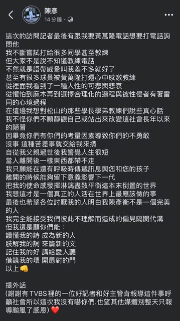 → Jimstronger : 只是當時楊教練發文後後來好像又刪文,也默默離開 11/13 14:03