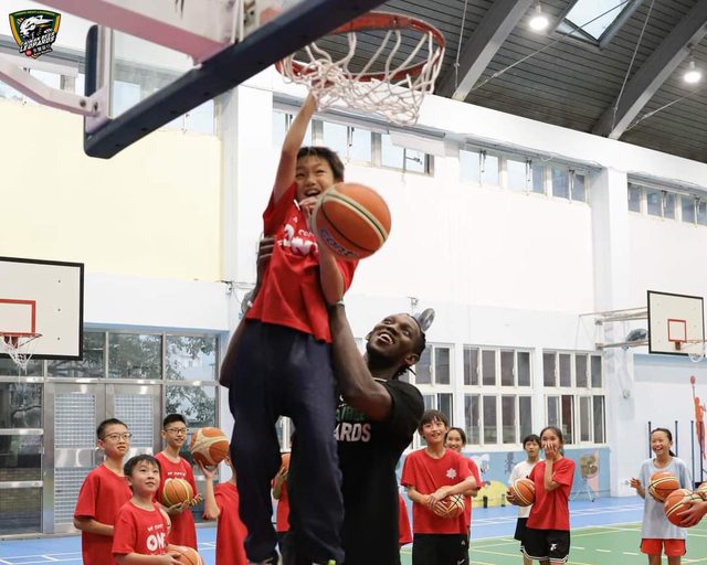 房運球技巧,並提醒小球員均衡飲食不挑食;#蓋比 也用讓小球員大吃一驚的流利中文說