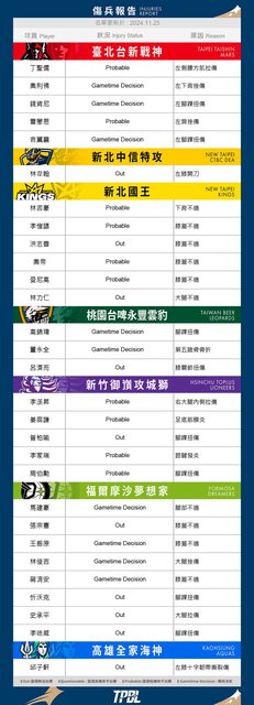 推 VIC0418 : Tpbl 傷兵聯盟? 11/25 20:06