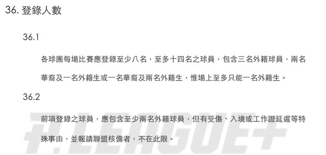 推 madaofreak : 36.1就只規定場上至多一外籍,所以對場上華裔人數應 11/28 16:30