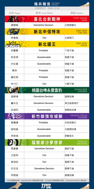 推 ct13579 : 這個公告是好的阿,也能讓球迷更好了解球員狀況12/02 19:52