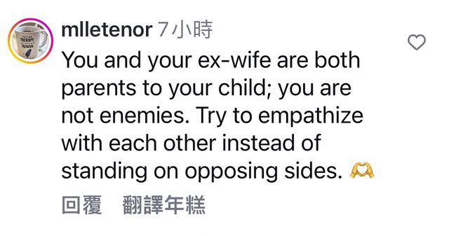 你和你的前妻都是孩子的父母,你們不是仇人。試著同理彼此,而不是站在對立邊。