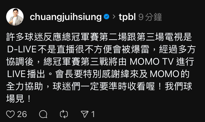 推 kobe4523 : momo棒球是重播的應該可以抽掉 明天再轉過去看看 06/20 12:35