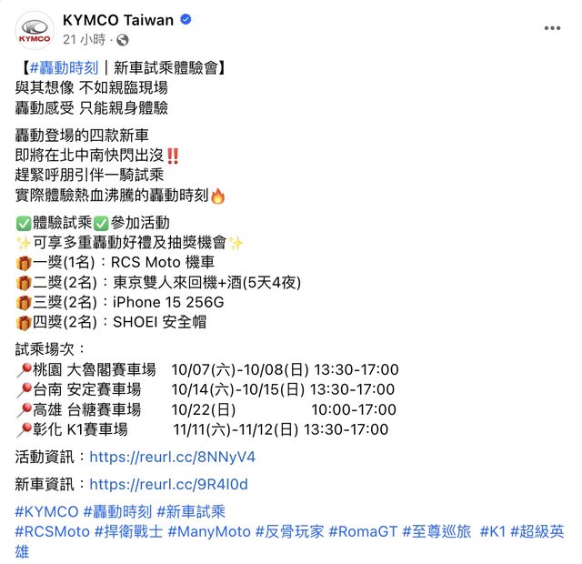 推 hygen: 試乘還抽獎送RCS moto這很有誠意啊!推 27.242.68.0 10/07 09:55