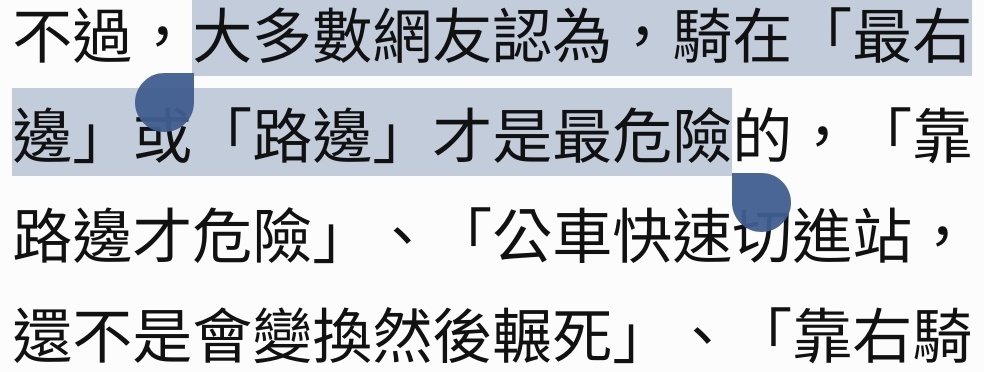 → hjkkk123: 劣規定(被逼只能靠右騎一堆違停還有小 114.34.145.96 10/17 00:07