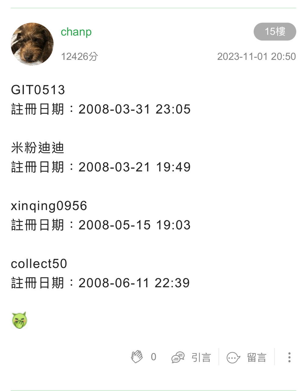 → anisakis1824: 號.....XDD27.51.153.42 11/01 15:05