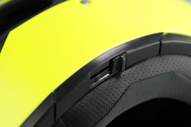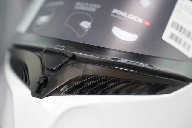 推動中間的按鈕,可以讓鏡片開一個小縫,目的是騎乘時讓風從縫隙進入,進而達到除霧