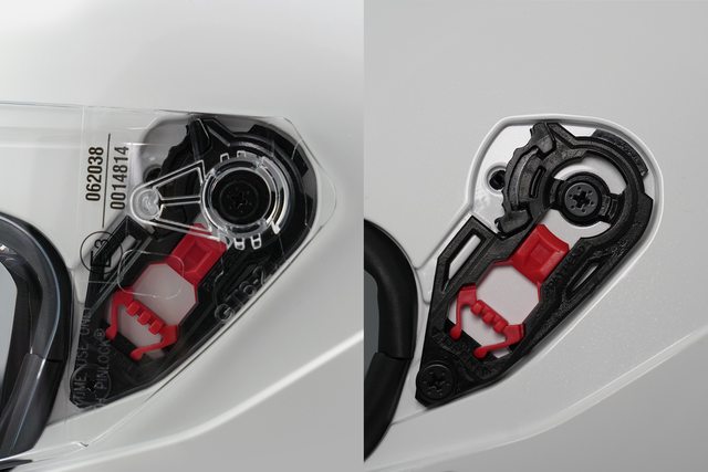 鏡片也是快拆式底座設計,一來是方便拆卸,二來也是撞擊時會瞬間脫離帽體,避免鏡片