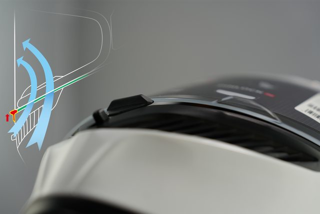 加進氣效率,內部 EPS 的氣道可輕易帶走頭頂的熱氣與溼氣,並由後排氣口排出。