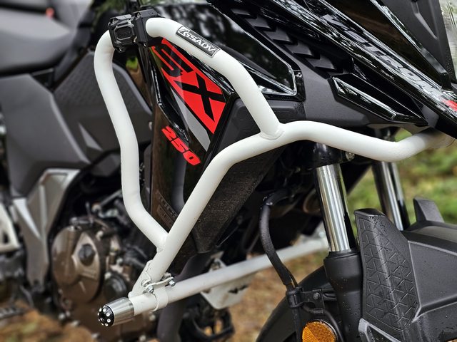 車側貼著大大的SX250貼紙,當有人看到車子太帥搭訕你的時候就可以很方便的指指