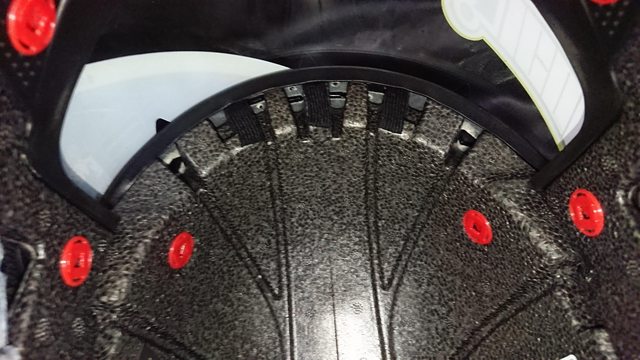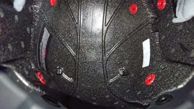 內襯,頭頂內襯有三條,蠻少見的內襯設計。 除了中間的頭頂內襯前面是用卡的外,其餘固定都是扣點。