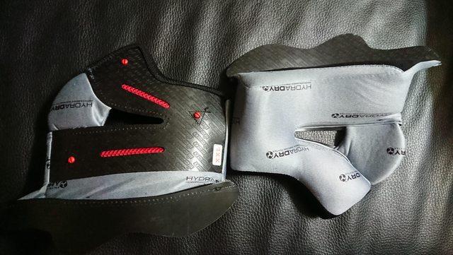 下巴罩,有個很微妙的設計是中間使用透氣網布。 安裝上單純是用卡的,但如果頰襯沒先拆下就去卡,保證卡不緊。 所以要先拆頰襯,卡好下巴罩,再裝頰襯,稍微麻煩的順序。