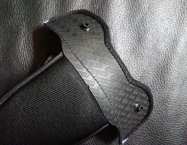 而扣具,當然就是對應賽道帽訂位給雙 D 扣,電鍍紅色質感很不錯。