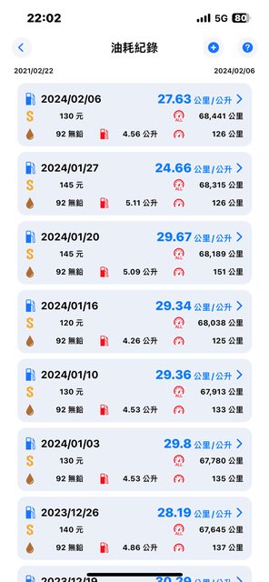 2/6過年前最後一次加油,今天不到5km就掉了一格油,還時常有汽油味