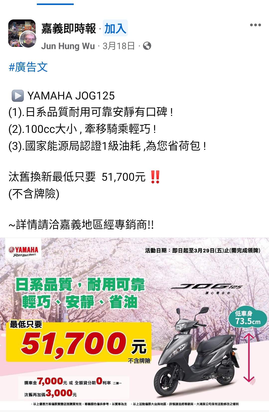 推 gooff: jog不算特價吧 去年底49800了 有些縣市更低 140.131.146.30 04/01 12:52