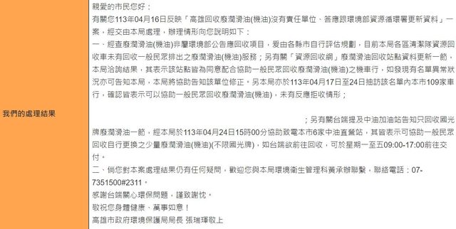→ tony120480: 到要求市府給我一個廢油回收的責任單 101.9.192.212 04/27 10:58