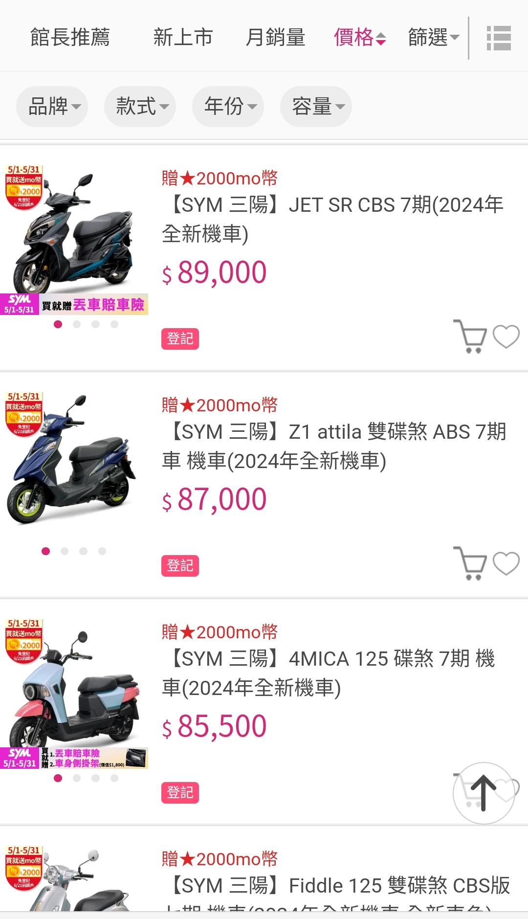 → kutkin: 三陽便宜2萬的是這些180.217.152.133 05/10 11:27