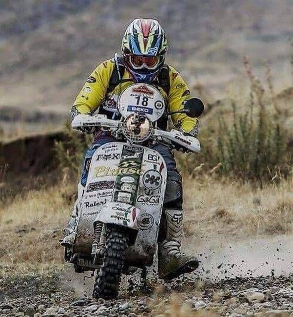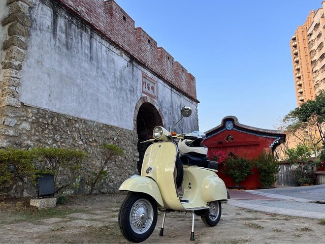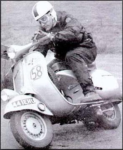 以前偉士的車手也會穿連身衣,再戴頂瓜皮配護目鏡