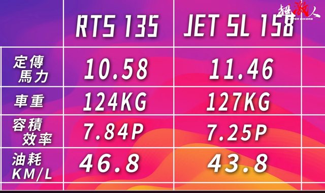 我的看法是JetSL+158動力當初被閹了一刀從15.6PS降成15PS