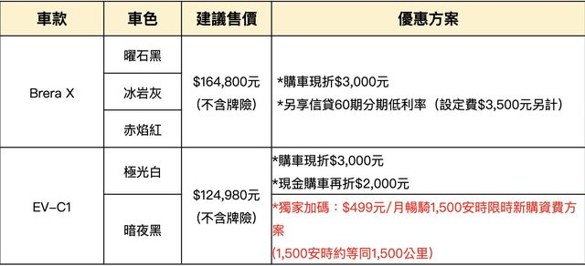EV-C1電動跑旅規配表: https://i.imgur.com/v6j63ul.jpeg