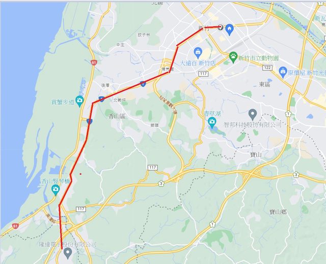 地點新竹巨城到竹南廣源科技園區 (經國路->中華路)