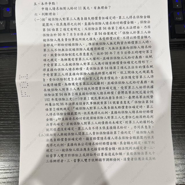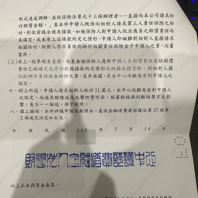 就我的理解,你與保險公司間應非屬金融消費爭議,
