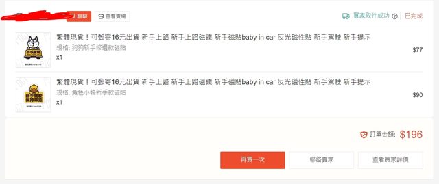 ps. 露天拍賣的購買紀錄只能留2年的樣子,剛剛去找,已經找不到了