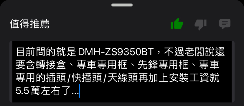 推 jpc186798111: 我老婆的油電FIT裝ZS9350BT大概花了3w7 08/05 01:05