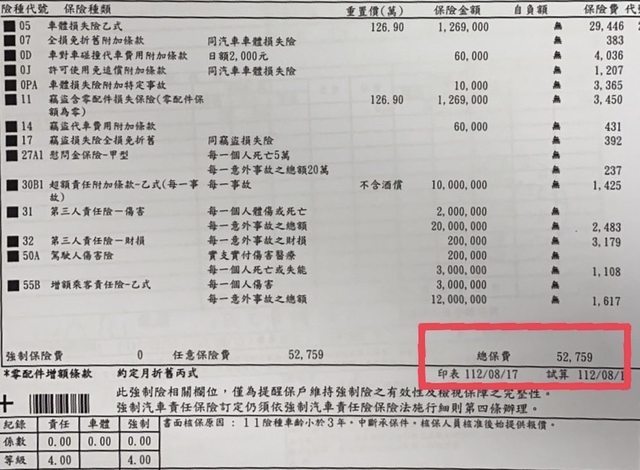 YESBOSS : 挖賽~現在車體險變這麼貴喔 08/18 15:47