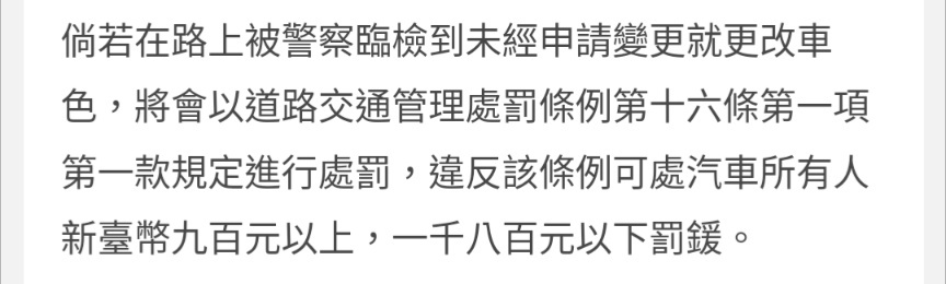 → hcshin: 原來改色就不用收罰單,這招大家學起來 08/31 19:03