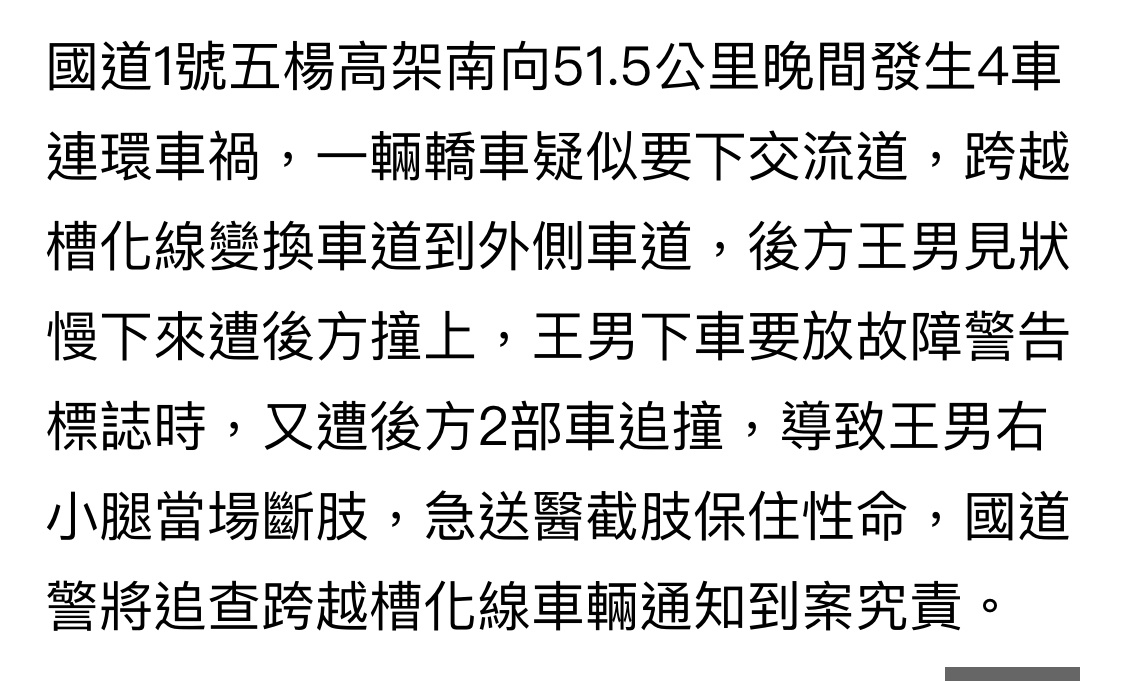 → zark07222: 案,腿白斷了!真的別下車放警示,國道更多吃便當+超 10/01 09:14