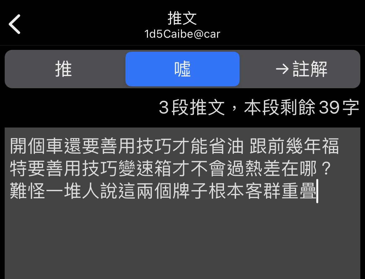 噓 snailking: 笑死哪來的臉跟豐田2.4t油電比然後油耗還輸 10/20 21:37