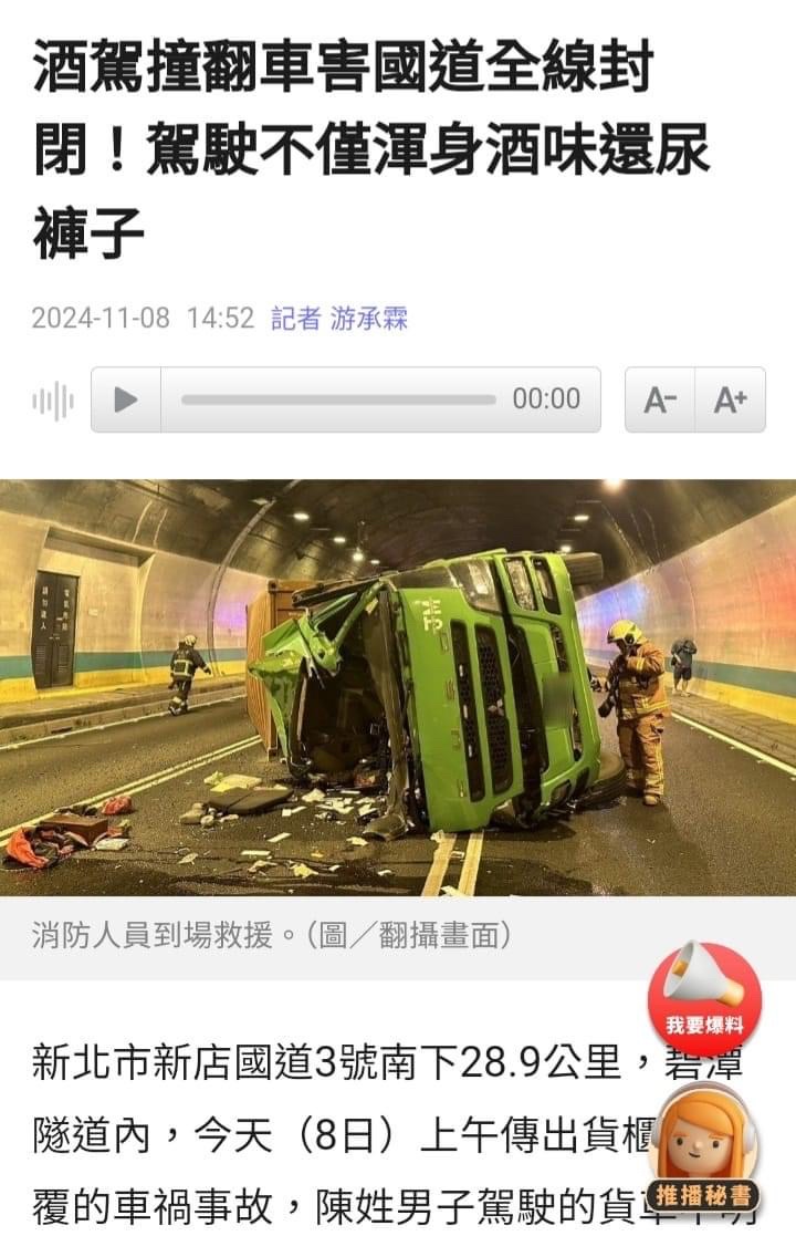 噓 Tass: 一定是開太快才會翻車 隧道速限應該只能限60再用區間測速 11/08 19:22