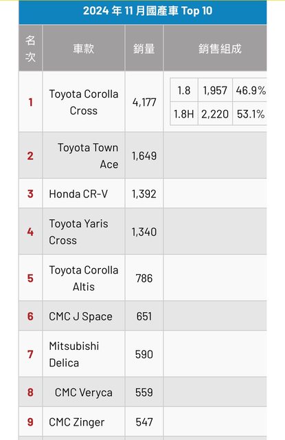 推 pii5566: 前十名有7台貨車,台灣人愛貨車? 12/02 18:24
