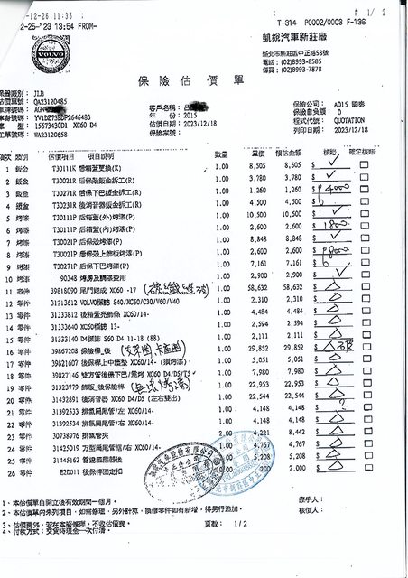 : : 112/12/26 對方車保險公司(明台)同意車廠報價單