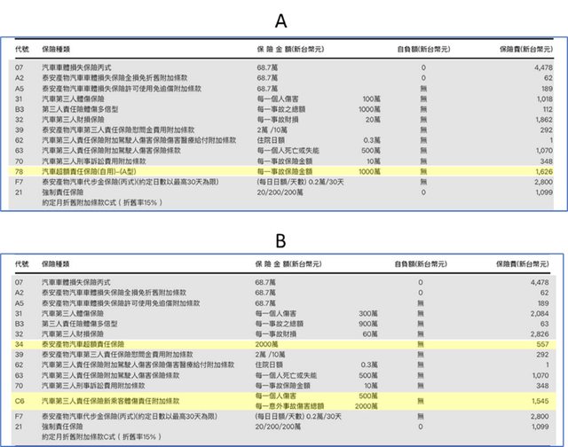 A單是業務第一次給的,請他提高第三人體傷跟財損後就變成B單