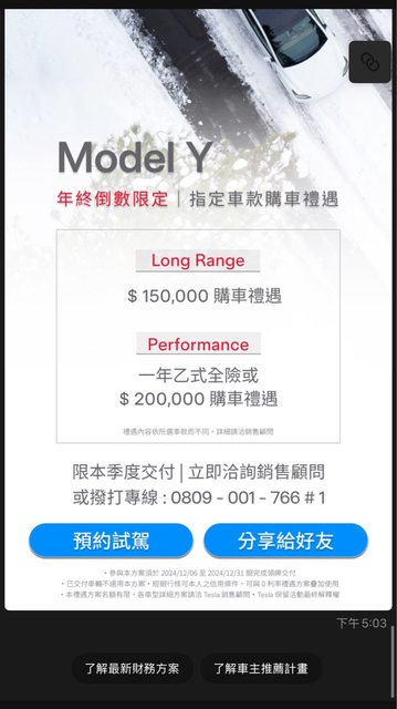 推 jior: 想不到台灣也有優惠了,看來真的要衝第四季交車量 12/06 17:53