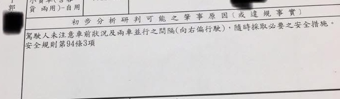 → ptt246: 初判轉彎車未注意後方車況,全責! 03/01 00:30