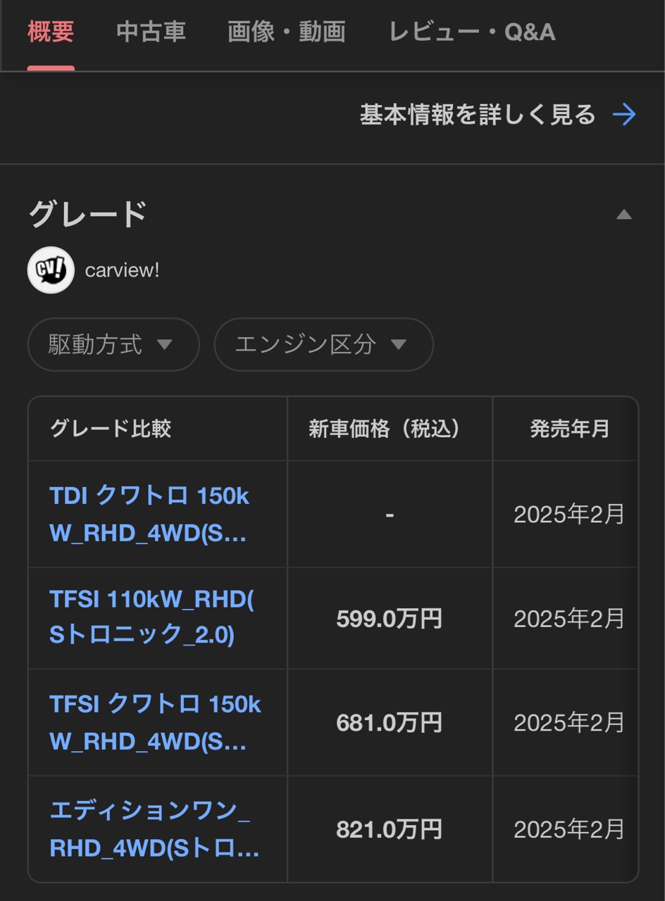 → NowQmmmmmmmm: 我朋友最近才在日本買台新的Audi跟台灣價差有夠大 06/27 21:07